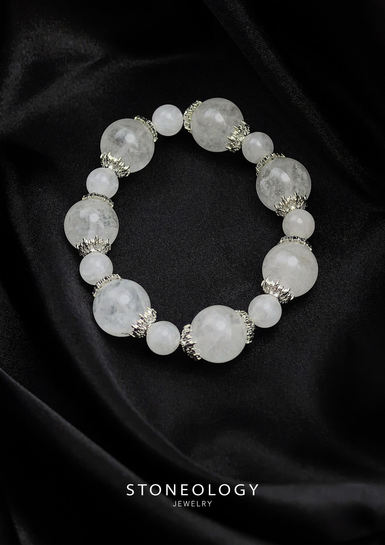 Crafted from white phantom quartz, each stone carries delicate wisps of mist within—like a captured dream, soft and luminous. Wear it, and let the sky’s gentle clouds rest upon your wrist, a whisper of freedom and hope.