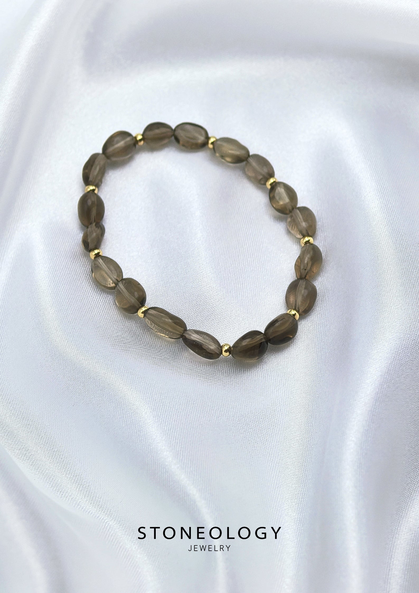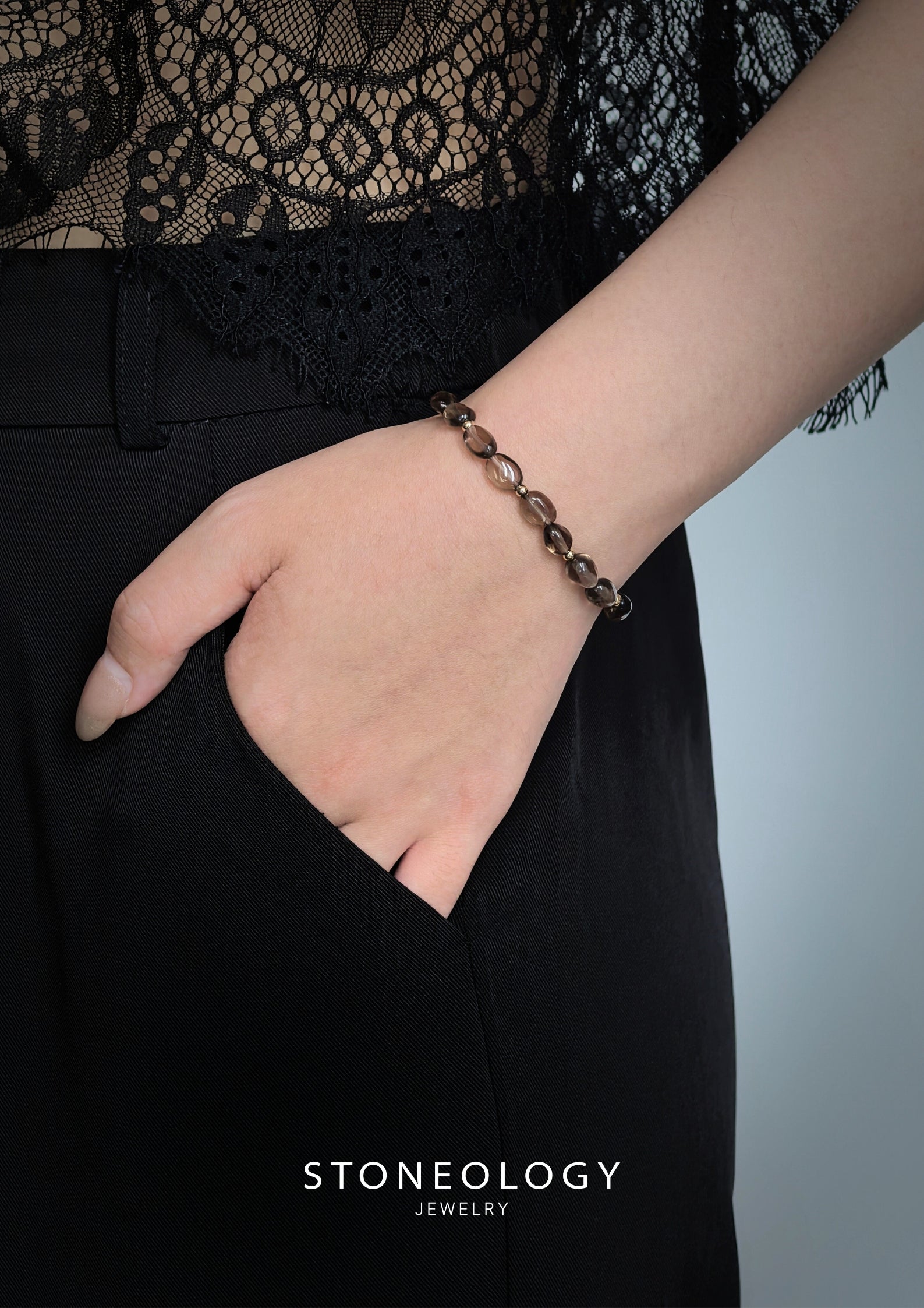Handpicked for their warm, translucent glow, these smoky quartz beads carry the serene depth of amber. Each piece is carefully strung together, creating a quiet refuge—your own private island of calm. Subtle yet refined, like time-honored wisdom, it holds both gentleness and strength.