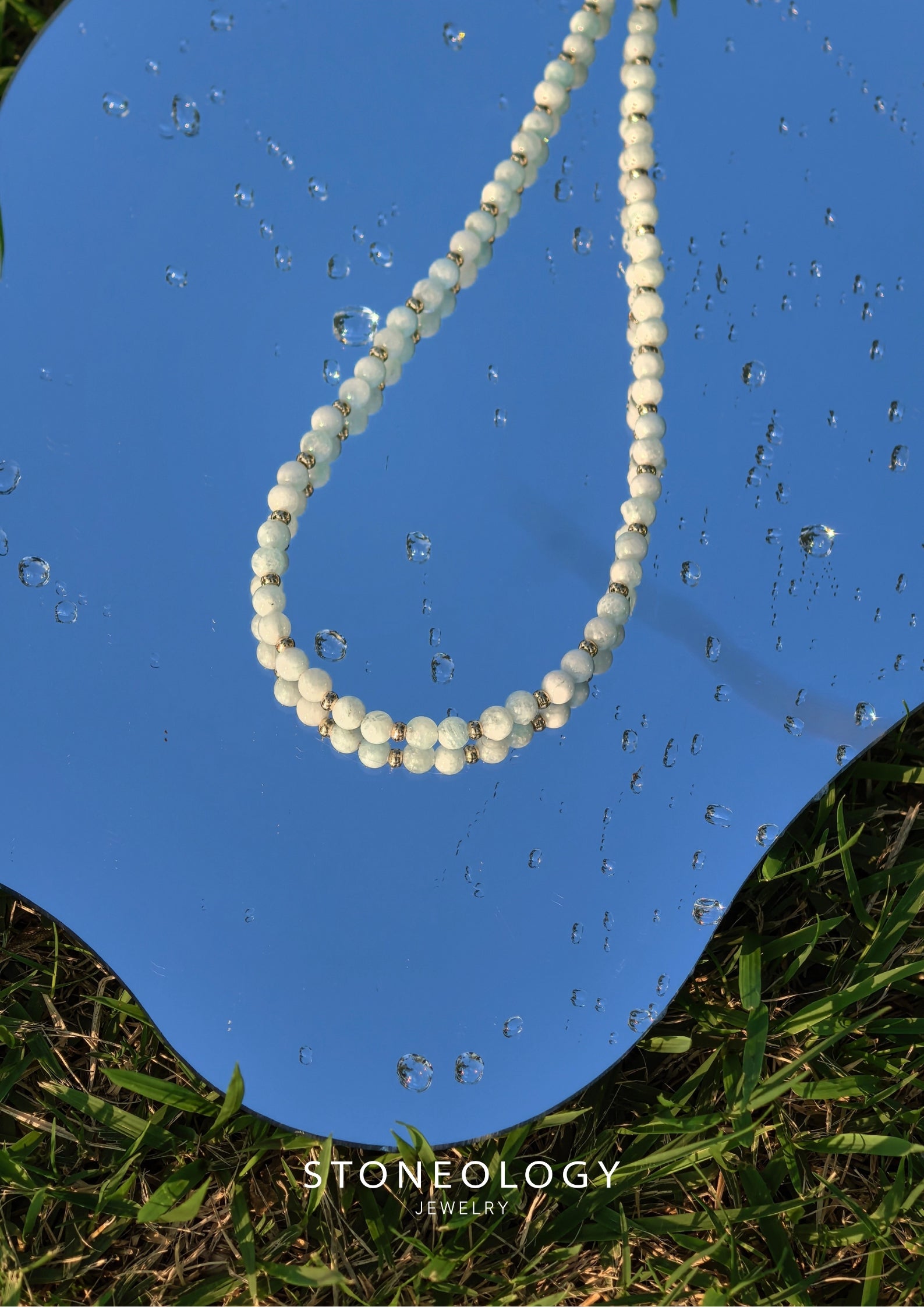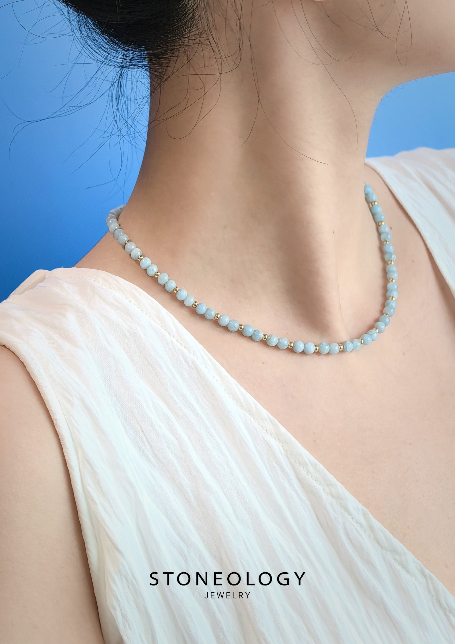 When you wear this necklace, the energy of aquamarine surrounds you. In moments of doubt, it helps you think clearly, stay strong, and fearlessly express your true self. Under pressure, it flows like a calming spring, easing anxiety and keeping you composed.